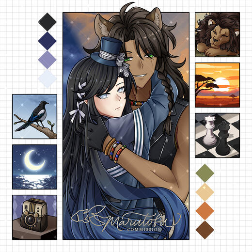 I don't accept Surprise Me / Omakase Commission. Please provide me with your character(s) design and personality as detailed as possible. For the pose, you can just give me a stickman drawing.